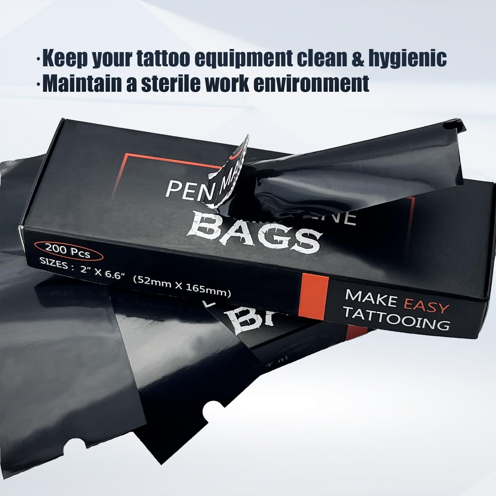 - 【Tattoo Pen Machine Covers Size】2.4 inch X 7 inch (60mm X 180mm), 200pcs per box. Suit for Wireless Tattoo Battery Pen or Big Size Pen Machine.